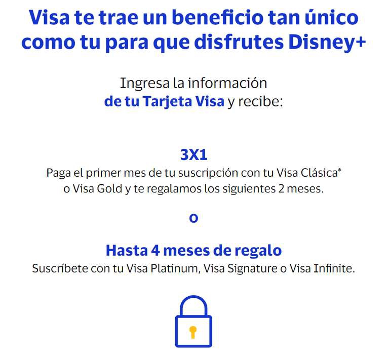 3x1 o hasta 4 meses de regalo Disney con VISA
