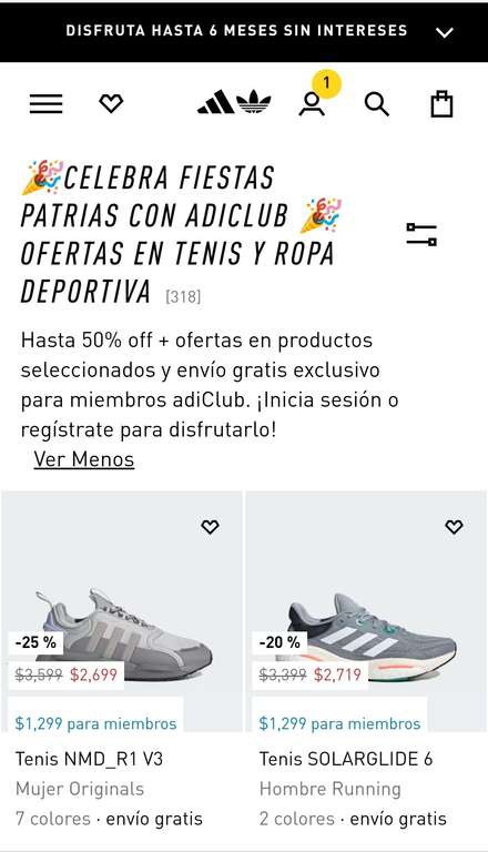 Adidas Ir a la ofertaHasta 50% off + ofertas en productos seleccionados y envío gratis exclusivo para miembros adiClub.