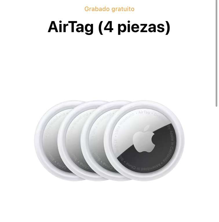 Apple Ir a la ofertaVi que hay una oferta igual en Amazon. La única diferencia sería el añadido de “Personalízalos gratis: Agrega un grabado a tu AirTag para hacerlo más tuyo. Combina emojis, iniciales y números. Sólo en Apple.”