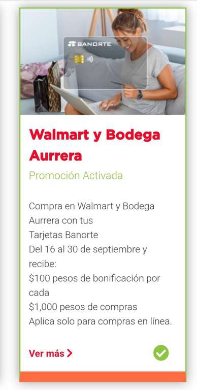 Banorte: 100 pesos de bonificacion por cada 1000 en Walmart y Bodega Aurrera Online