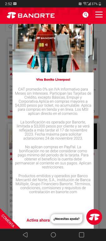 Banorte: 15% de bonificación con TDC en Liverpool del 8 al 17 de septiembre, compra mínima de $4000