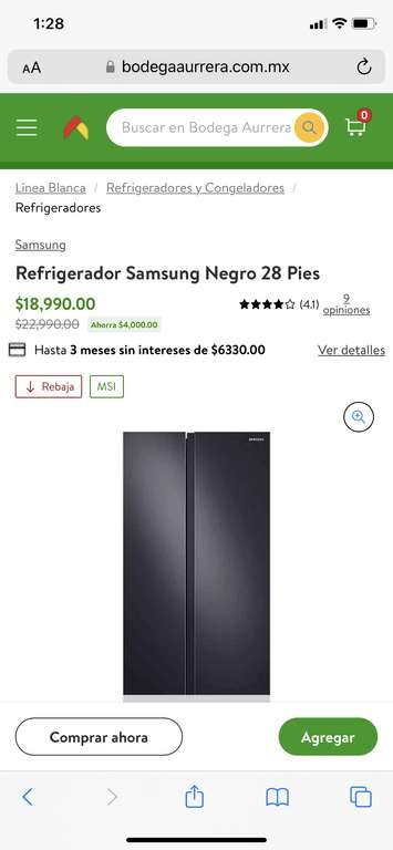 Bodega Aurrera Refrigerador Samsung Negro 28 Pies