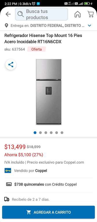 Coppel: Refrigerador Hisense 16 pies
