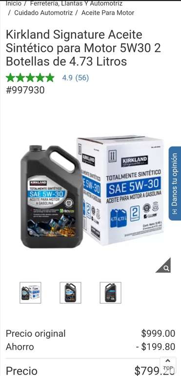 Kirkland Signature Aceite Sintético para Motor 5W30 2 Botellas de 4.73 Litros