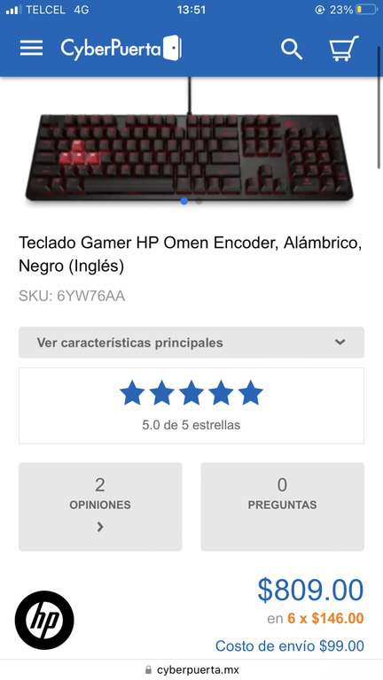 CyberPuerta Ir a la ofertaControla una sinfonía impecable de las pulsaciones de teclado con el teclado codificador OMEN diseñado con un registro de teclas n 100% anti-ghosting. Los interruptores mecánicos Cherry MX Brown y Cherry MX Red te dan la agilidad que necesitas para maniobrar por delante de la competencia. Para ayudarte a rendir con más precisión, cada tecla tiene retroiluminación LED con un color rojo intenso para que nunca pierdas la oportunidad de tener éxito. Omen Command Center le permite controlar fácilmente los efectos de iluminación, brillo, una sola tecla de encendido/apagado, teclas multimedia, macros con ajustes sobre la marcha.