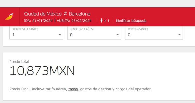 Iberia Ir a la ofertaVuelo redondo en aerolinea para ENERO; barcelona es costa, por lo que el clima no es extremo. 21 de enero al 3 de febrero 2024