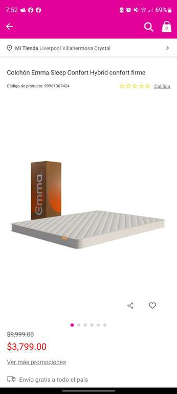 Liverpool Ir a la ofertaMáxima comodidad y versatilidad: el colchón emma confort hybrid combina lo mejor de dos mundos. Su capa de espuma de poliuretano ofrece una amortiguación adicional para una experiencia de descanso suave, mientras que el núcleo de resortes proporciona un soporte óptimo y un excelente flujo de aire. ¡Disfruta de la comodidad que te mereces. Regulación de temperatura: gracias a la funda tejida transpirable, el colchón emma confort hybrid te mantiene fresco durante toda la noche. Su diseño innovador maximiza el confort y regula la temperatura corporal, brindándote un descanso sin interrupciones. Regulación de temperatura: gracias a la funda tejida transpirable, el colchón emma confort hybrid te mantiene fresco durante toda la noche. Su diseño innovador maximiza el confort y regula la temperatura corporal, brindándote un descanso sin interrupciones. Colchón en caja: con nuestro innovador concepto ''bed in a box'', recibirás tu colchón emma en una caja directamente en tu hogar. Solo tiene que desempacarlo y en 20 minutos estará listo para ofrecerte el descanso que mereces. 5 años de garantía & 100 noches de prueba: nuestra misión es mejorar la calidad de tu descanso. Prueba tu colchón emma sin compromiso - si no sea de tu agrado puedes regresarlo fácilmente y te devolvemos tu dinero