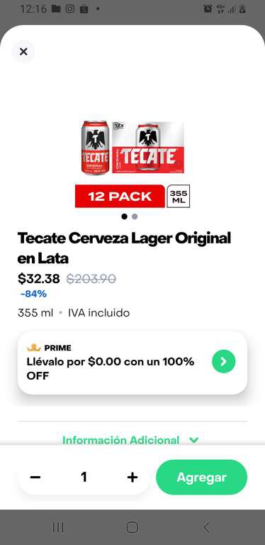 Paquete de 12 Cerveza Tecate con Rappi Turbo