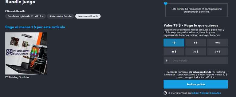 Humble Bundle Ir a la ofertaOferta paga lo que quieras para pc building simulator en humble bundle. El precio del juego base es de tan solo un dolar (17 pesos mexicanos) y 5 o 10 con las expansiones. Precio minimo historico.