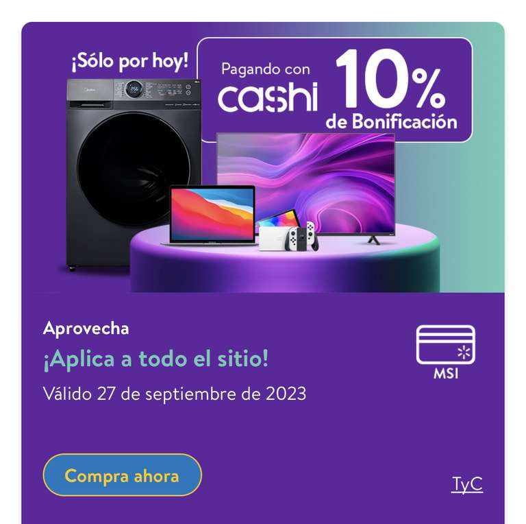 Walmart: 10% bonificación en todo el sitio pagando con Cashi (solo online)