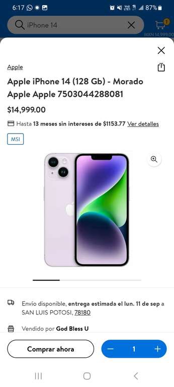 Walmart: iPhone 14 128gb NUEVO (Banamex y 13MSI)