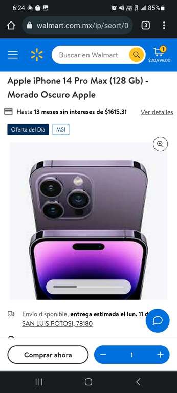 Walmart: iPhone 14 Pro Max 128gb (Banamex y 13MSI)