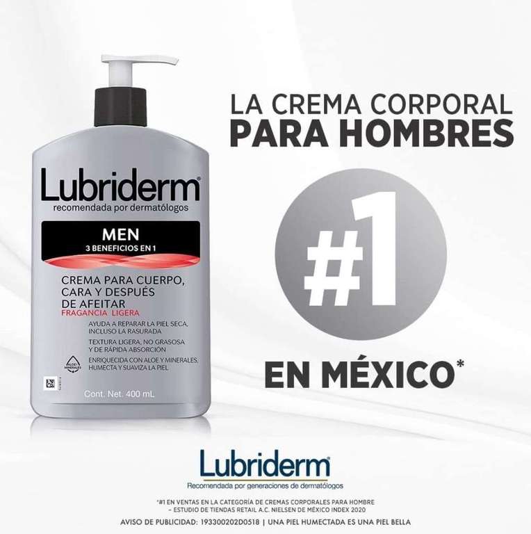 Amazon: LUBRIDERM Crema Corporal Men, Fragancia Ligera, 400 ml, 3en 1 (envio gratis con PRIME) el precio mas bajo hasta ahora