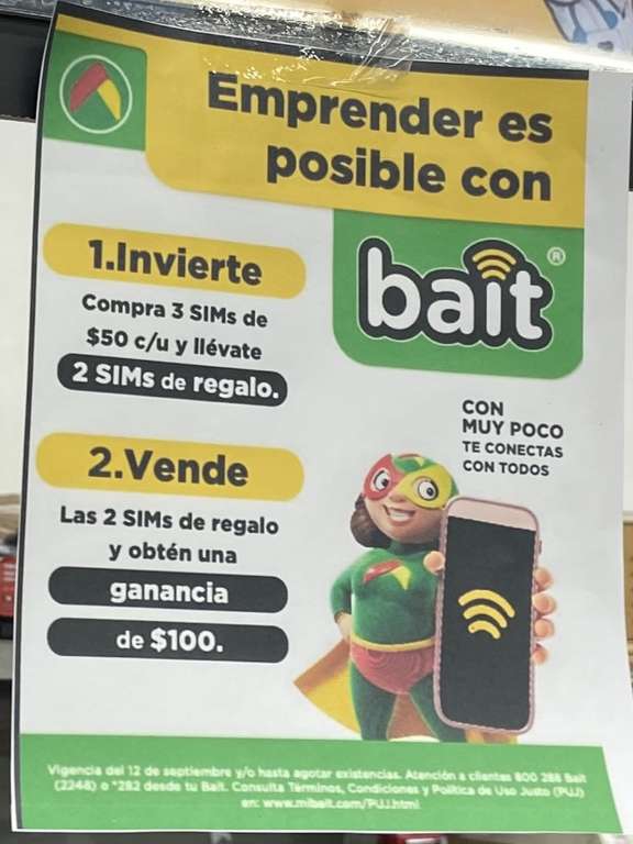 BAIT Compra 3 sims y llévate 2 de regalo con 7 días de servicio y 10Gb de navegación (5Gb 5Gb).