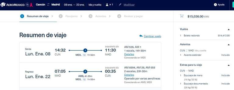 Aerom\u00e9xico Ir a la ofertaVuelo a madrid redondo por aeromexico con maleta documentada