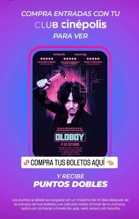 Cin\u00e9polis Ir a la oferta+Quecine y cinepolis presentan Oldboy en versión remasterizada.