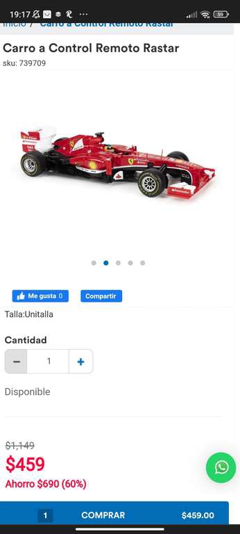 Coppel Rastar F1 Ferrari Coche Teledirigido