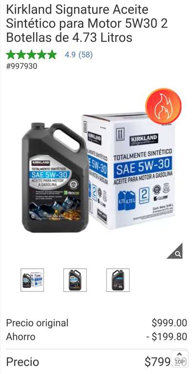 Costco 2 botellas de 473l de aceite sintético 5w30