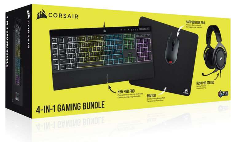 El Kit Gamer 4 en 1 Corsair está diseñado para uso recomendado en juegos y cuenta con funciones de protección como ser resistente a los derrames. Su peso total es de aproximadamente un kilogramo, siendo el teclado el más pesado con 810 gramos mientras que los auriculares tienen un peso de 325 g; por su parte, el ratón tiene un peso ligero de solo 85 g y la alfombrilla para ratón pesa alrededor de doscientos treinta gramos.