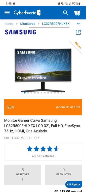 CyberPuerta Ir a la ofertaMonitor de 32 pulgadas curvo se me hace buen precio