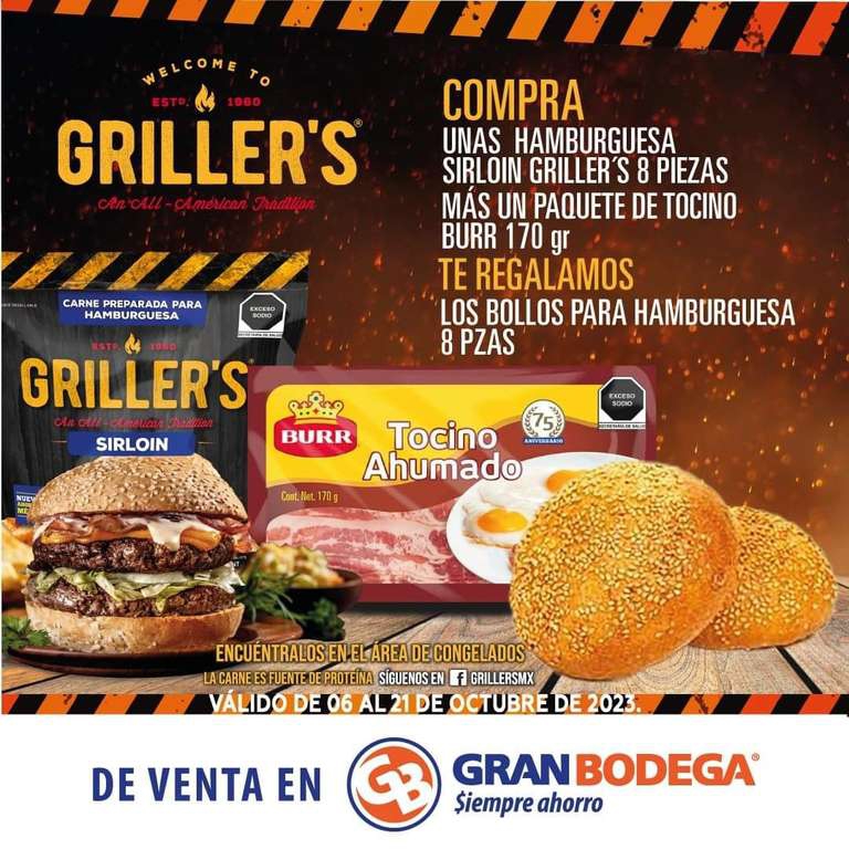 Ir a la ofertaEn la compra de las hamburguesas de sirloin Griller's y un paquete de tocino de la marca Burr te regalan unos bollos , solo agrega al carrito las hamburguesas y el tocino e inmediatamente se agregan los bollos sin costo!! De gratis!!