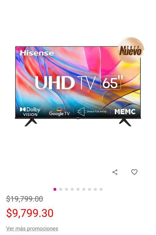 Liverpool Ir a la ofertaPantalla Hisense LED smart TV de 65 pulgadas 4K/UHD 65A7K con Google TV