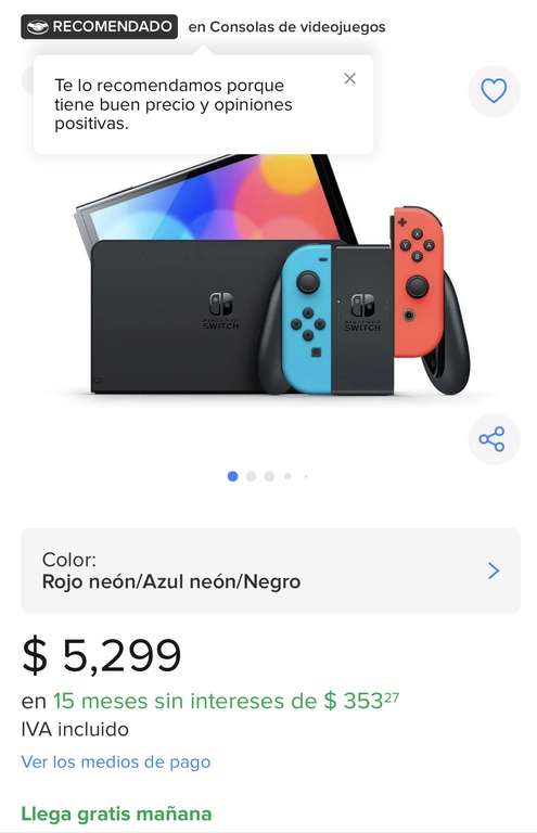 Mercado Libre: Nintendo Switch OLED (pagando con Amex a MSI)