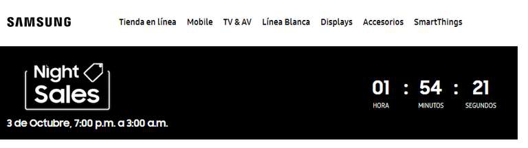 Ofertas de 7:00 PM a 3:00 AM - Night Sales de Samsung | 10% OFF con el cupón NSOCT2