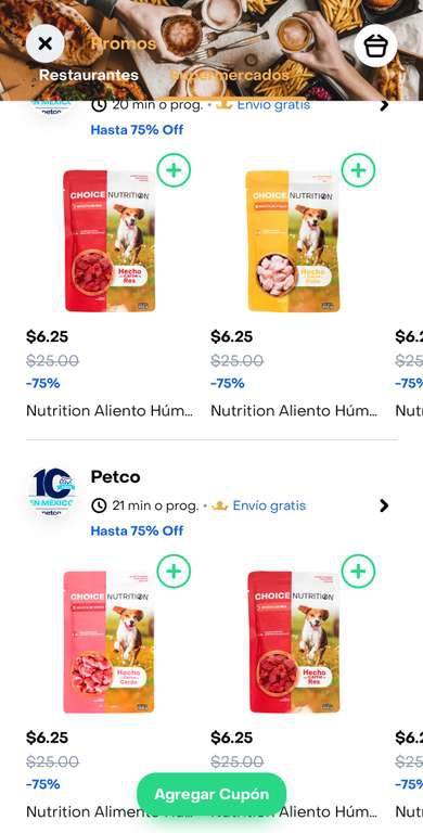 Visto en rappi, tienda Petco, sección supermercados.