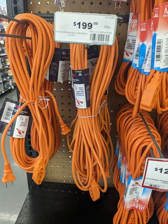 SorianaBuscando extensiones eléctricas, encontré esta opción en Soriana, la etiqueta de Soriana dice uso rudo, la etiqueta del artículo dice uso doméstico, la verdad es que por el grueso del cable y la calidad, el precio de $59 está muy bien.