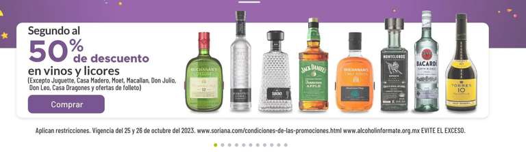 Soriana - Segundo 50% de descuento en Vinos y Licores