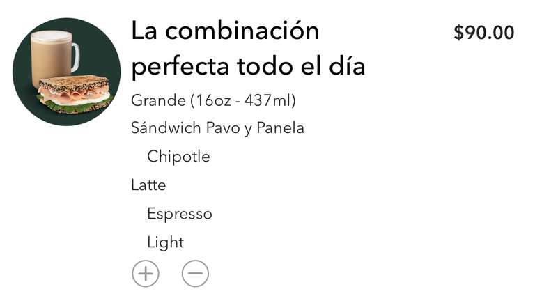 Starbucks - Combo Late Grande + Sándwich Pavo y Panela