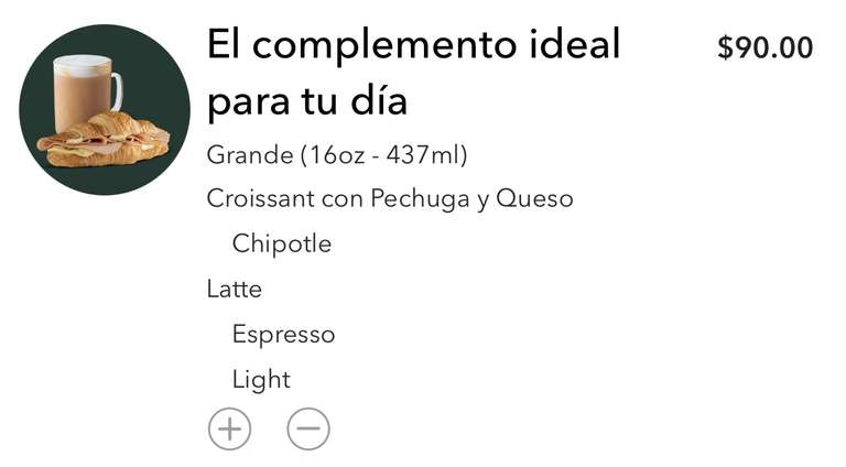 Starbucks - Combo Latte Grande + Croissant con Pechuga y Queso