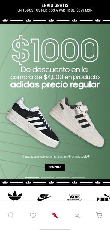 TAF $1000 de descuento en la compra de $4000 en productos ADIDAS de precio regular