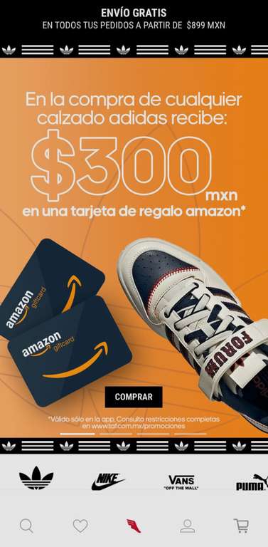 Tarjeta de regalo TAF Amazon por valor de $300 con la compra de cualquier zapato adidas.