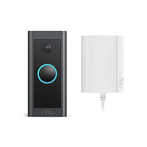 - Video Doorbell Wired es sólo compatible con los cables de un timbre existente de 10-24 voltios. Para casas sin timbre existente o con timbre de mayor voltaje, utiliza el Adaptador de corriente Ring que viene incluido. Enchufa el Video Doorbell Wired a un tomacorriente interior estándar para energía y tranquilidad las 24 horas del día.