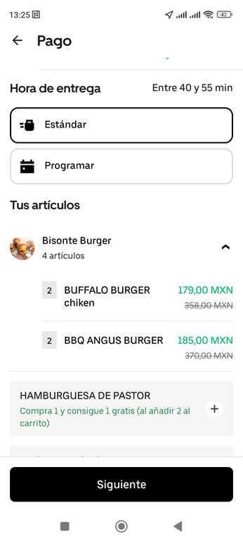 Agregar 1 Bbq Angus y 1 búfalo chicken, se aplica el 2x1 automáticamente (no sé si sirva con otros platillos) así queda en $119 pesitos.
