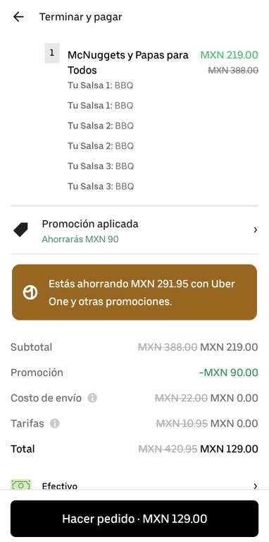 Uber se come 30 nuggets y 2 papas fritas medianas de McDonald's por 129 pesos - Garza Sada