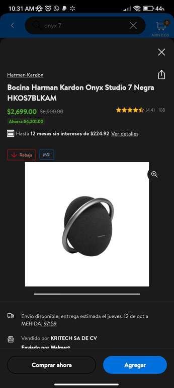 WALMART En Línea: Harman Kardon Onyx Studio 7 Sin promos bancarias