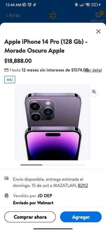 Walmart Ir a la ofertaQueda al precio de $16,621 aplicando el cupón del 12% de bonificación pagando con tdc BBVA. Cupón: W10BBVA