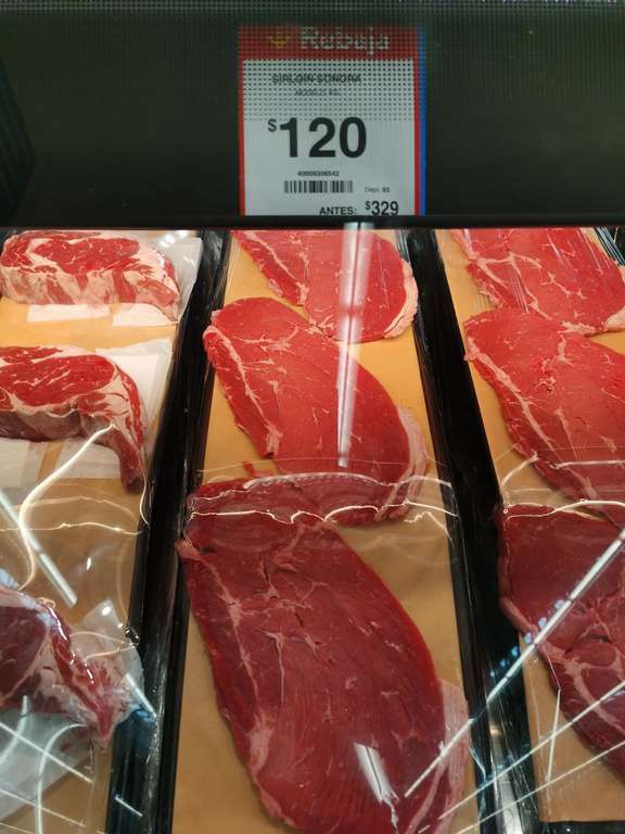 Sirloin en 120 (todavía vi muchas charolas y el carnicero tiene