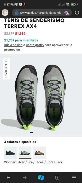 Adidas: TENIS DE SENDERISMO TERREX AX4 GREY THREE (solo miembros)