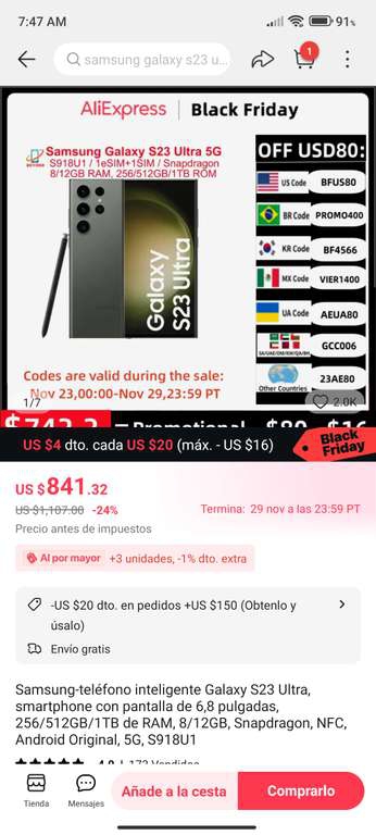 AliExpress Ir a la ofertaSe llega al precio con el cupón y además pagando en dólares.