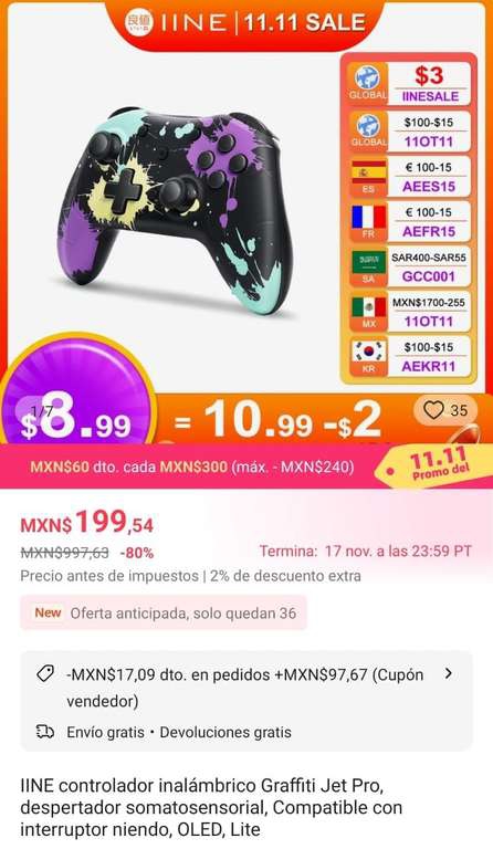 AliExpress Ir a la ofertaBaja a la hora de pagar y con cupón de bienvenida baja hasta 102, adjunto prueba en los comentarios.