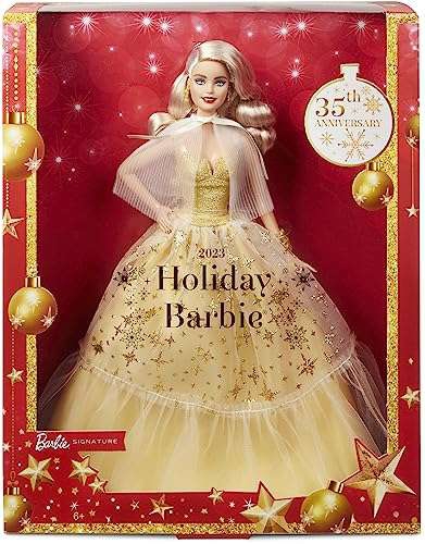 Amazon Ir a la oferta- Celebra la época más festiva del año con Barbie! Con motivo del 35.º aniversario de Holiday Barbie, esta elegante muñeca brilla con toda la buena voluntad y el brillo de la temporada.