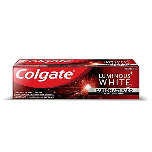 Amazon Ir a la ofertaColgate Pasta Dental Blanqueadora, Luminous White Carbón Activado, Remueve Manchas Superficiales 125 ml.