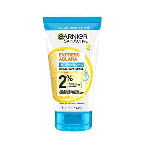 Amazon Ir a la ofertaGarnier Limpiador Exfoliante Anti Acne Express Aclara con Ácido Salisílico, 150 ml.