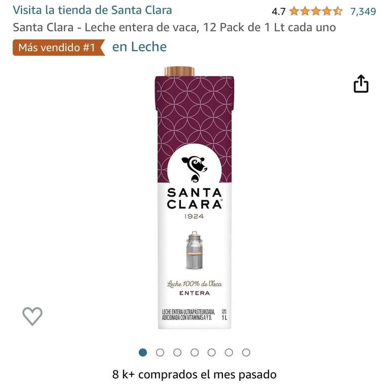 Amazon Santa Clara Leche Entera Paquete de 12 Plana y Cancela | Envío gratis con Prime