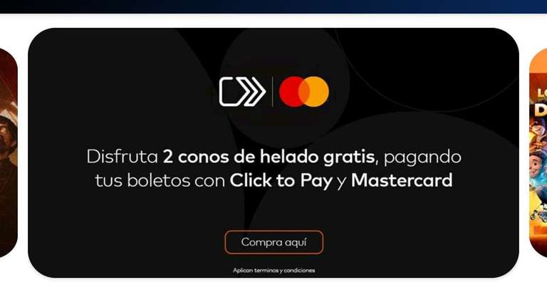 Cin\u00e9polisEntrando a la app de Cinepolis me encontre con esta oferta, no es tan Buena como El como cuates a precio promocional Al pagar con Clicktopay, pero no se me hace mal la oferta de obtener 2 helados gratis solo por pagar con Clicktopay. Espero les sirva de algo