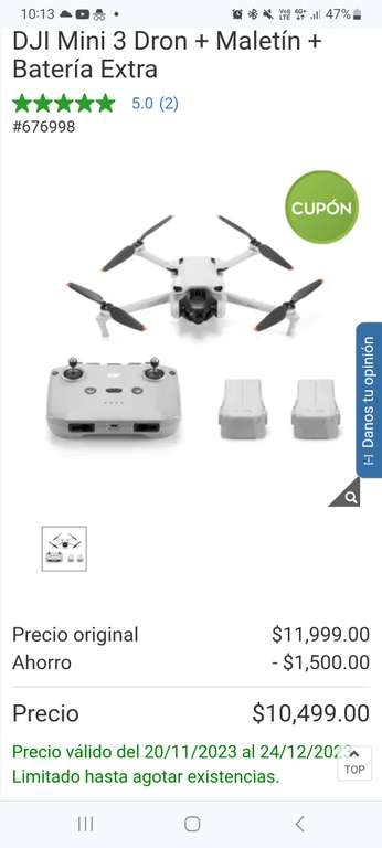 Estuche de batería adicional para drone COSTCO DJI Mini 3 con cupón de costco citibanamex